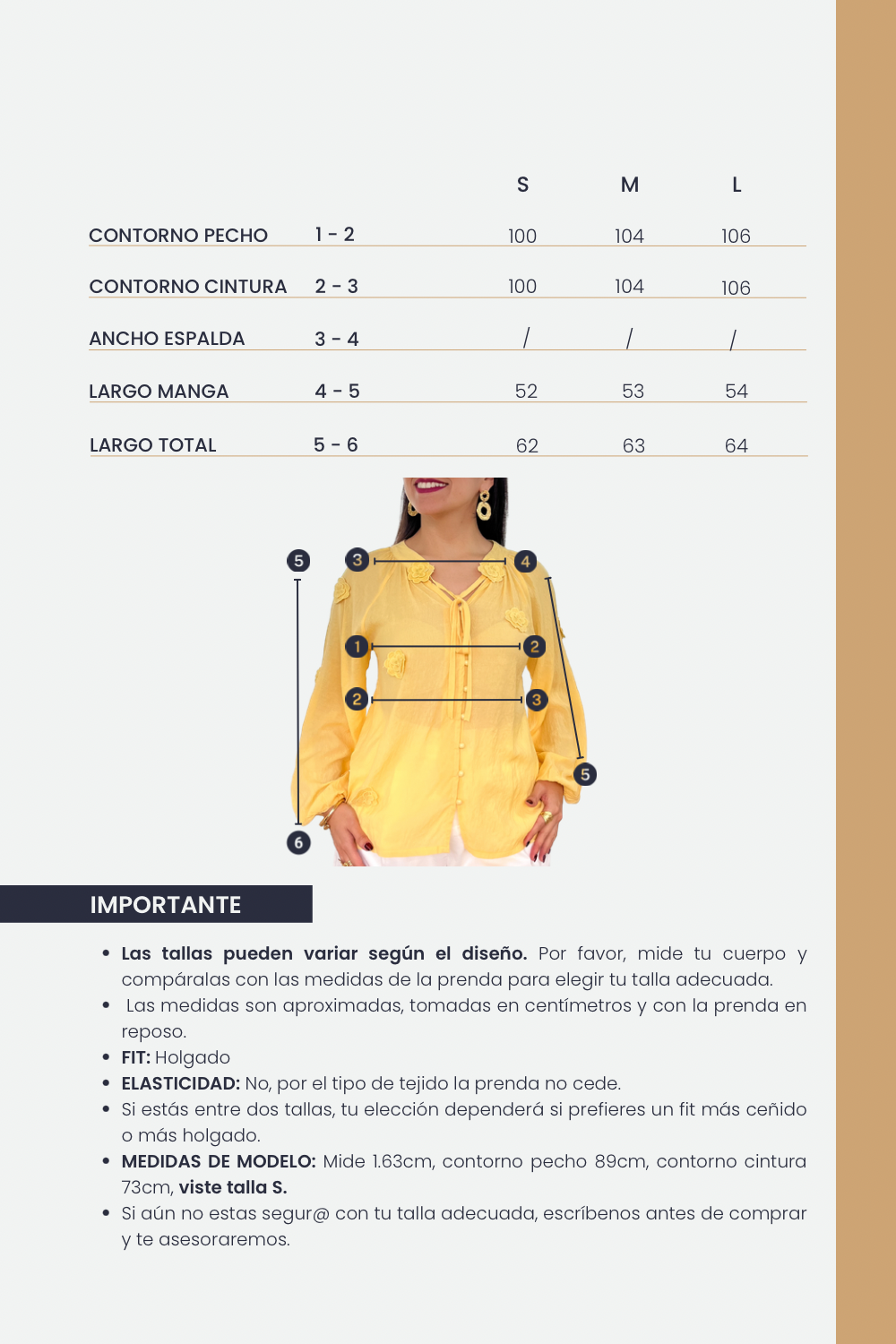 Así que, si por cualquier razón, no estás completamente satisfecha y deseas realizar un cambio y/o devolución, estaremos encantados de ayudarte.
