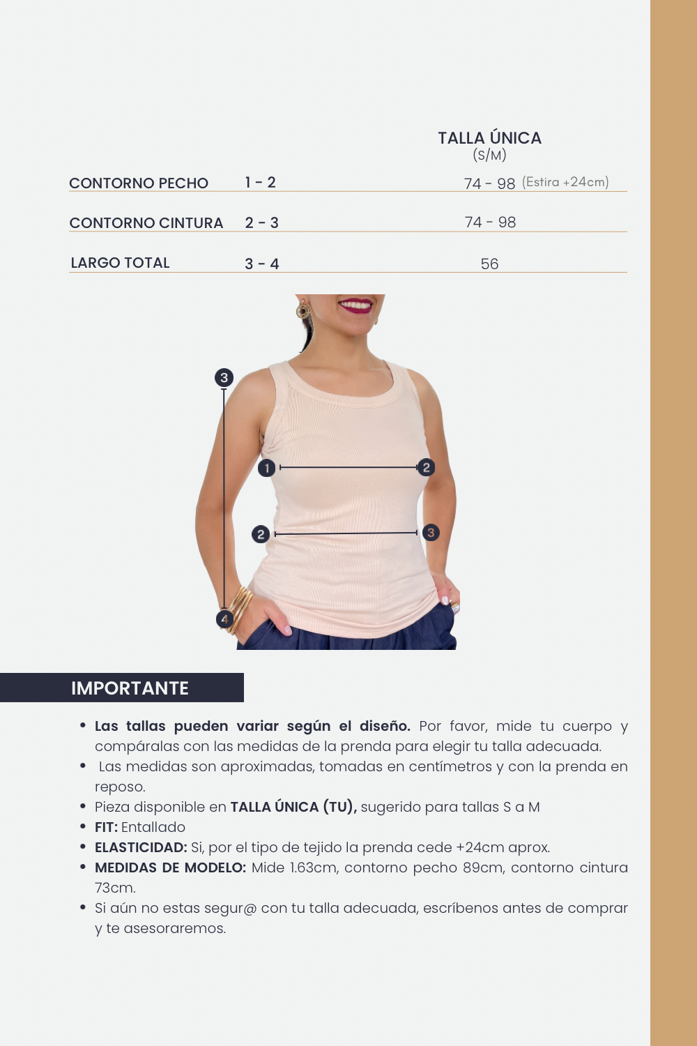 Así que, si por cualquier razón, no estás completamente satisfecha y deseas realizar un cambio y/o devolución, estaremos encantados de ayudarte.